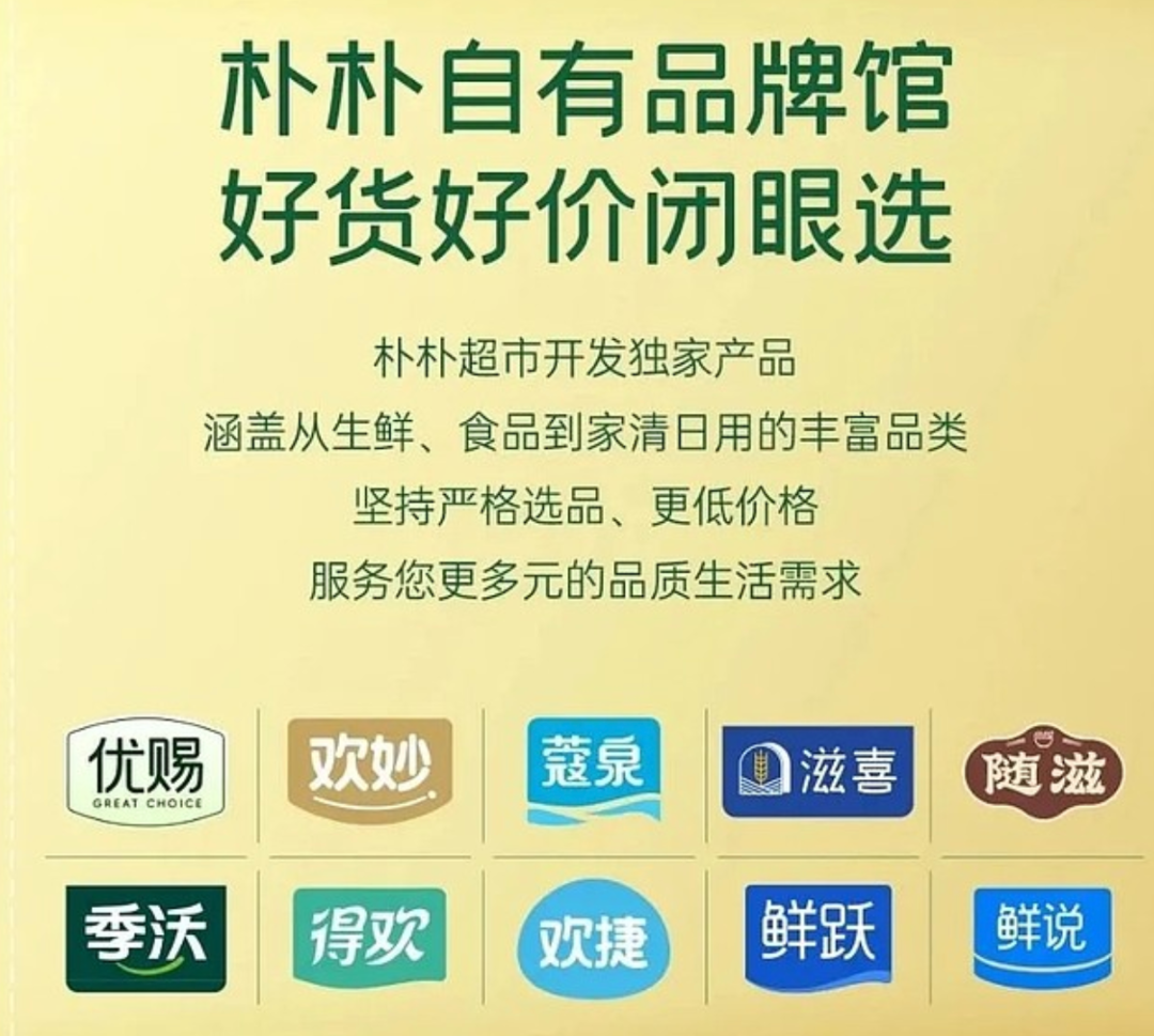 數(shù)據(jù)顯示,2024年樸樸超市自有品牌銷售額占比約15%-20%,雖目標2025年提升至20%,但品類集中于食品、日用百貨等低毛利領(lǐng)域。