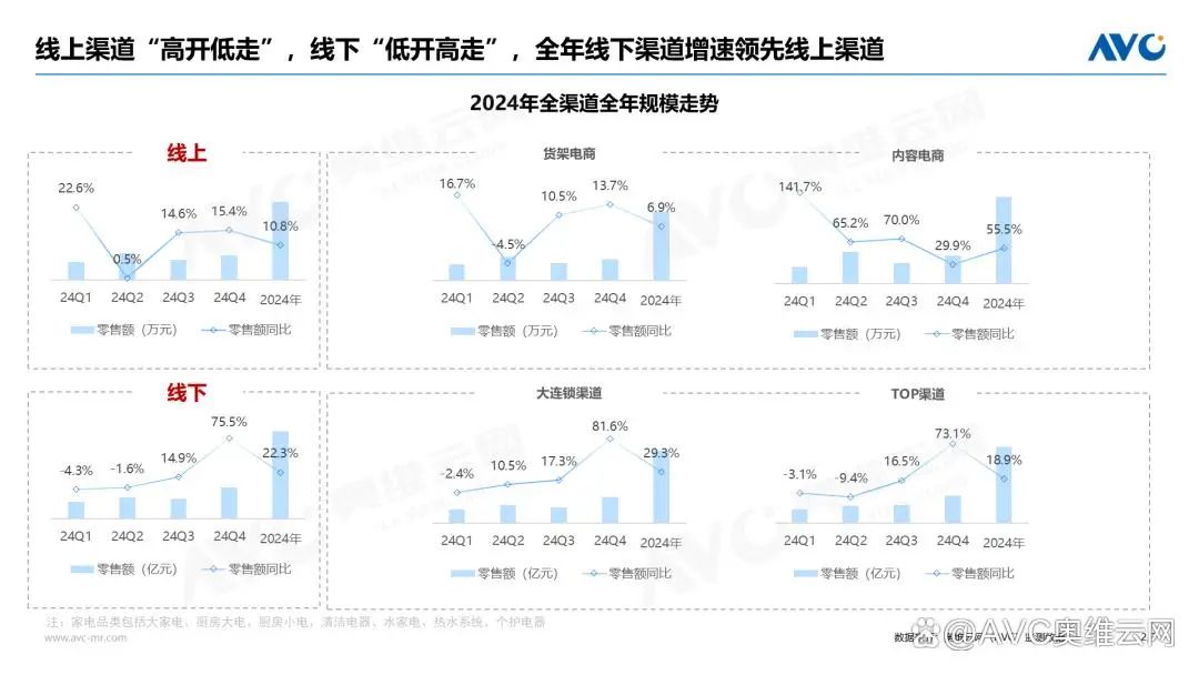 根據(jù)奧維云網(wǎng)監(jiān)測(cè)顯示,2024年線下渠道以22.3%的全年增速?gòu)?qiáng)勢(shì)復(fù)蘇,大連鎖渠道表現(xiàn)尤為亮眼。