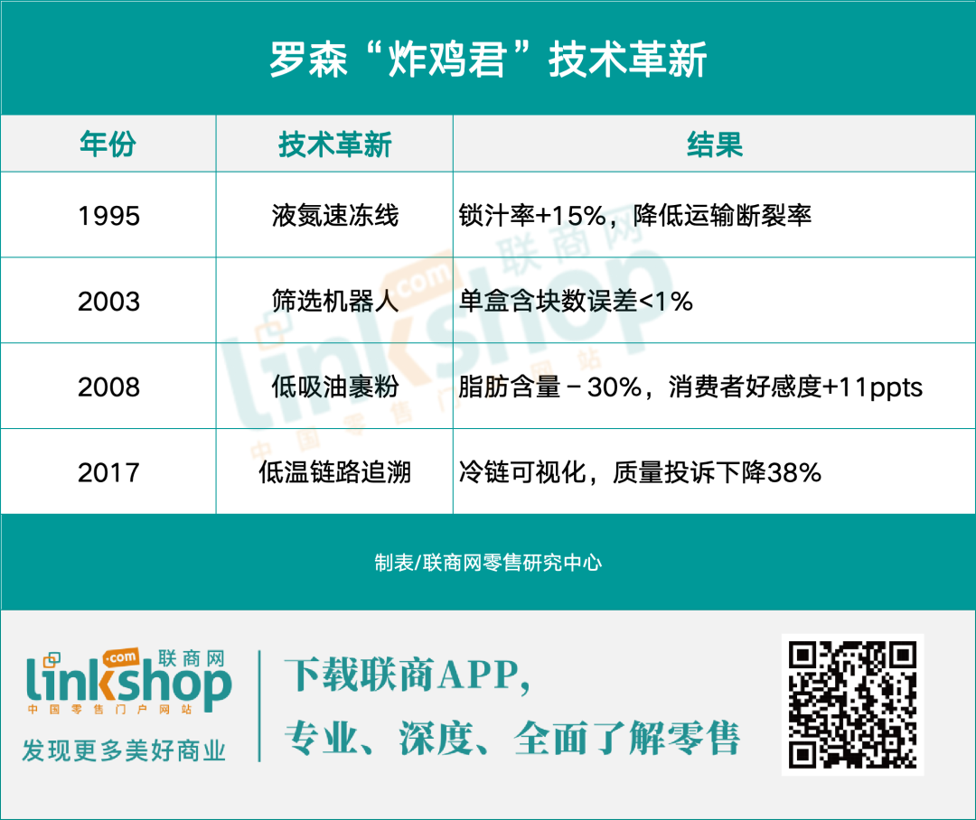 羅森炸雞君新商品在1986年4月試賣,3小時(shí)售罄,1988年全國(guó)鋪開,當(dāng)年即突破1億份。炸雞君自此成為羅森增長(zhǎng)曲線的“加速器”。