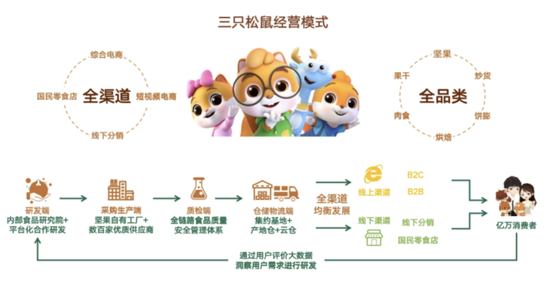 再比如三只松鼠進(jìn)一步提高產(chǎn)品的性價(jià)比和供應(yīng)效率,三只松鼠打造了“一品一鏈”供應(yīng)鏈管理模式,即每一個(gè)品類構(gòu)建一個(gè)全鏈條的新供給體系。