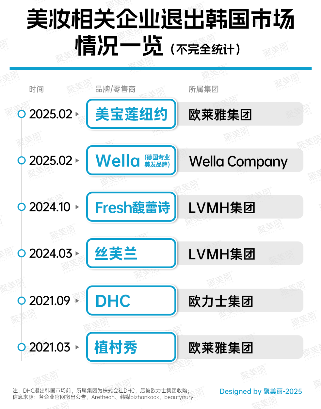 從國(guó)際美妝企業(yè)近年來(lái)退出韓國(guó)市場(chǎng)的統(tǒng)計(jì)情況來(lái)看,多家國(guó)際美妝企業(yè)旗下品牌/零售商已在此前宣布退出韓國(guó)市場(chǎng),其中便包含了歐萊雅集團(tuán)旗下的美寶蓮紐約、植村秀。