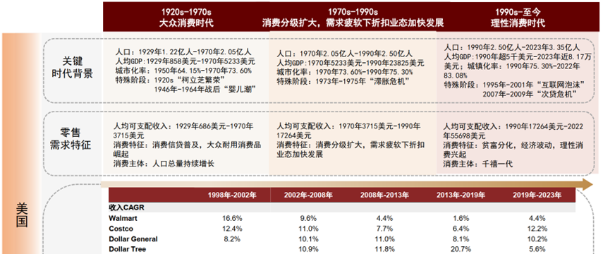 陷入通縮的日本,在1990年后,增長最快的額就是折扣零售,唐吉坷德成為大牛股,德國的硬折扣連鎖店奧樂齊也有相似的發(fā)展歷程。即使消費市場不斷膨脹的美國,也呈現(xiàn)相同的規(guī)律,1990年代以來,美國居民更多地關(guān)注商品性價比,理性消費登上歷史舞臺,Costco被芒格視為非賣品。