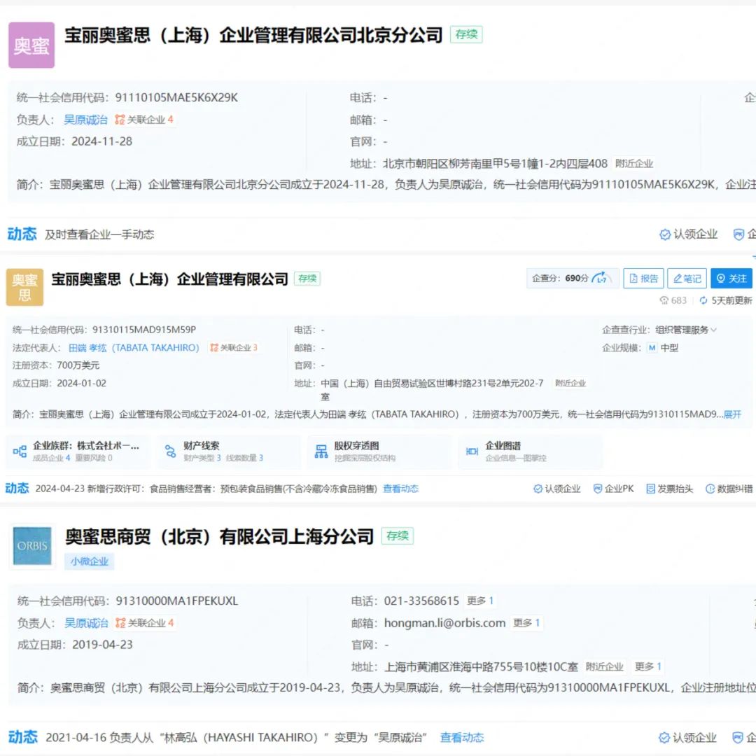據(jù)企查查信息顯示,除前文提到的奧蜜思北京外,POLA集團(tuán)在中國還設(shè)有寶麗奧蜜思(上海)企業(yè)管理有限公司北京分公司、寶麗奧蜜思(上海)企業(yè)管理有限公司等中國子公司。