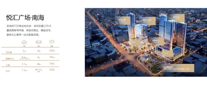 在廣佛全域同城化推動下,佛山商業(yè)向品質(zhì)化、生活服務型升級。越秀商管首個佛山“雙地鐵TOD商業(yè)綜合體”悅匯廣場·南海,以22萬㎡體量構(gòu)建“商務+生活+消費”閉環(huán)生態(tài)。項目憑借廣佛線與佛山三號線雙地鐵交匯,搭配“地鐵直達 + 36 條公交”,借南北主干道輻射禪桂經(jīng)濟圈,形成流量與消費雙重引力。