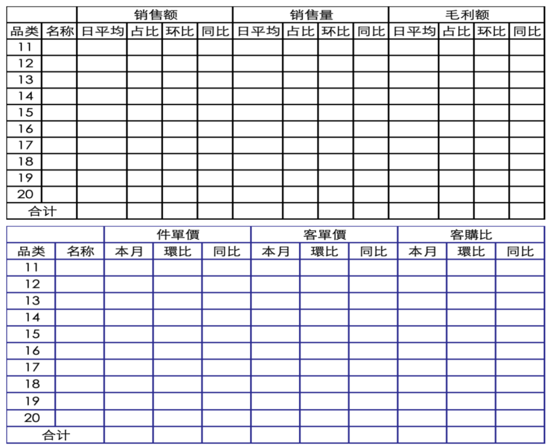 從數(shù)據(jù)分析的廣度來(lái)看,基礎(chǔ)維度涵蓋銷(xiāo)售額、銷(xiāo)售量、毛利額,而精細(xì)化維度則包括件單價(jià)、客單價(jià)及客購(gòu)比等指標(biāo)。這些多維數(shù)據(jù)構(gòu)成了商品分析的基礎(chǔ)框架。