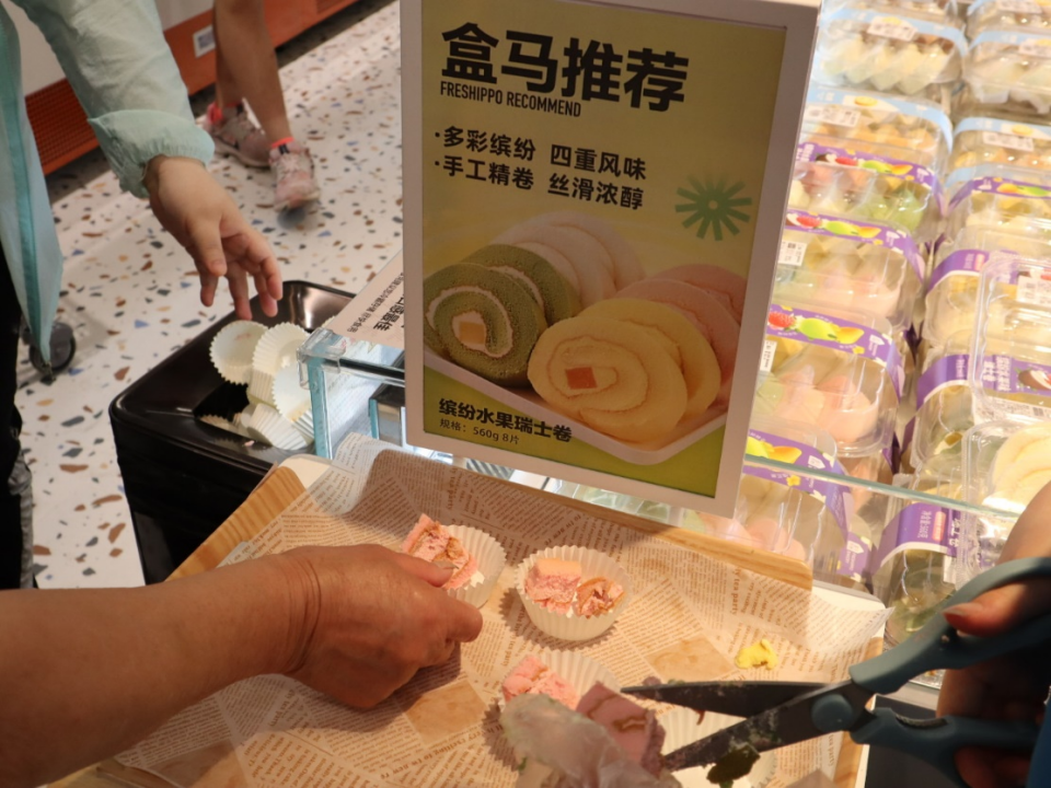 “線上試運(yùn)營期間,盒馬烘焙貓山王榴蓮千層蛋糕、瑞士卷、云南藍(lán)莓等熱門商品,都穩(wěn)居前列!焙旭R鮮生臺州中盛廣場店店長說,“但是線下到店的市民更圖一個新鮮,一些新鮮的蔬果和水產(chǎn)也很受顧客的青睞!