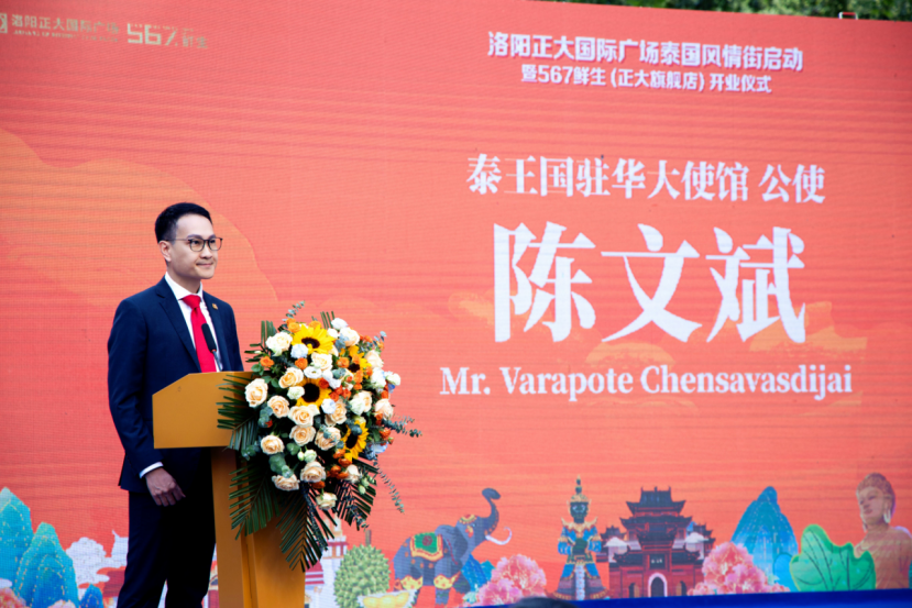 活動(dòng)儀式致辭中,泰王國(guó)駐華大使館公使陳文斌(Varapote Chensavasdijai)表示:“此次活動(dòng)恰逢泰中兩國(guó)關(guān)系的重要里程碑,并共同慶祝泰中建交50周年,不僅將促進(jìn)兩國(guó)人民之間的好友關(guān)系,還將通過泰國(guó)美食文化和特色商品的展示,讓洛陽(yáng)市民乃至中國(guó)人民更加深入的了解泰國(guó)。中泰一家親,我們?cè)诮?jīng)濟(jì)、文化、美食、教育等多領(lǐng)域的交流與合作,將推動(dòng)泰中友好關(guān)系持續(xù)蓬勃發(fā)展!