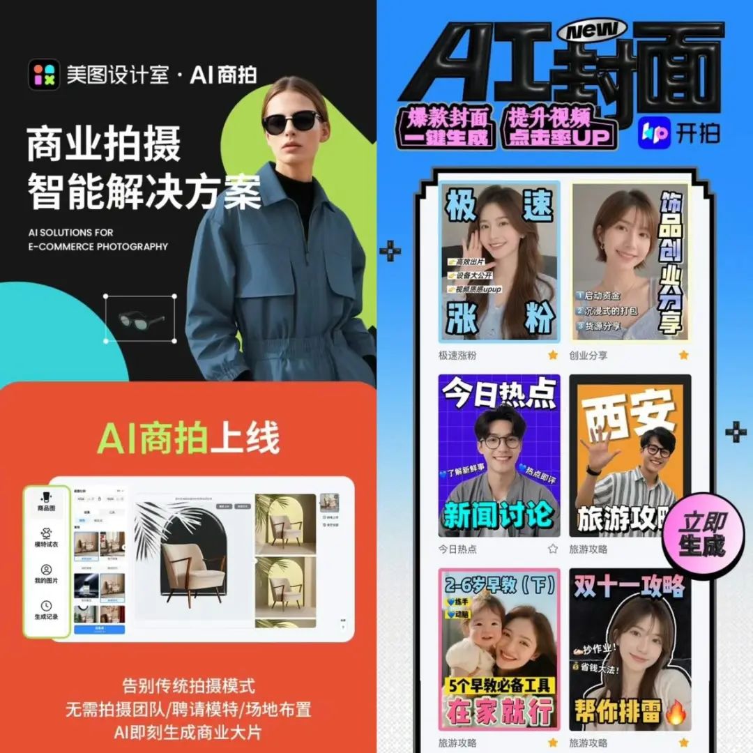 而美圖的回報,除了資金流動性的注入外,阿里還會在全球電商平臺中接入其AI電商工具,并幫助美圖開發(fā)數(shù)據(jù)驅(qū)動的電商生圖及生成視頻的新工具。