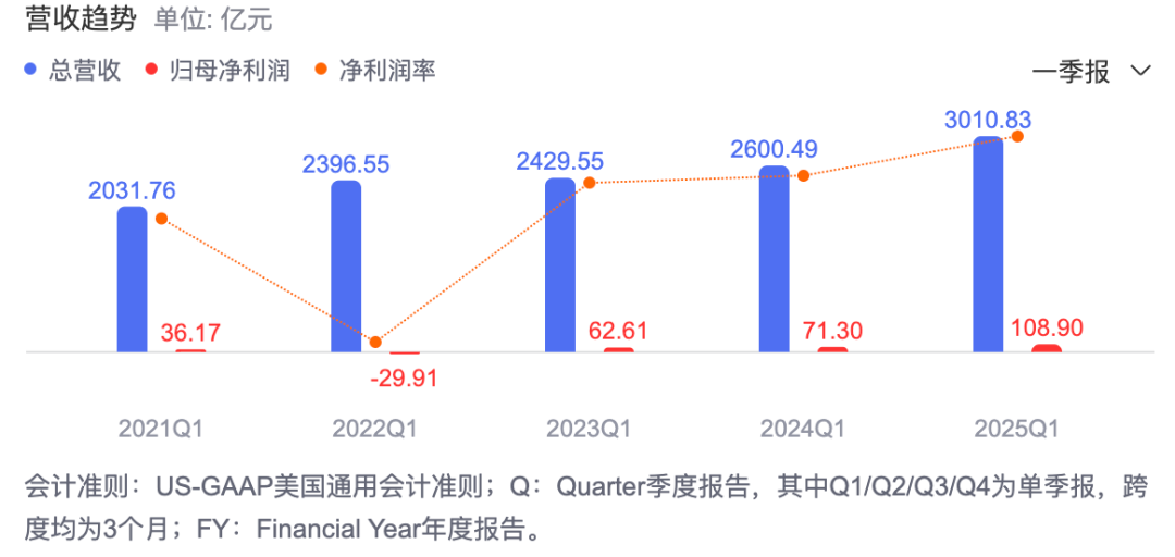 據(jù)財報顯示,2025年第一季度,拼多多總收入為956.722億元,同比增長10%,連續(xù)第二個季度營收同比增幅低于20%;營業(yè)利潤為160.856億元,同比下降38%;非美國通用會計準則下營業(yè)利潤為182.597億元,同比下降36%。