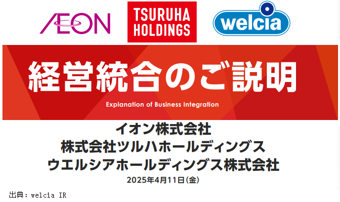 2025年4月11日,永旺(千葉)、Welcia(東京)、鶴羽(北海道)三家企業(yè)聯(lián)合發(fā)布資本合作協(xié)議,預計在2025年12月至2026年1月期間達成具體合同交易,此舉意味著行業(yè)老大Welcia和行業(yè)老二鶴羽開始動手,整合為一體。