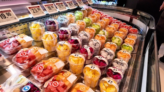 水果區(qū)的泰國(guó)金枕榴蓮專柜占據(jù)C位,集合荔枝、山竹等時(shí)令爆品,同步推出鮮榨果汁、鮮切水果和標(biāo)注最佳食用順序的果切拼盤(pán)。為保障生鮮品質(zhì),超市嚴(yán)格執(zhí)行鮮度承諾,葉菜、分切肉禽等嬌嫩商品實(shí)行“當(dāng)日清空”,果切超4小時(shí)八折、6小時(shí)六折、8小時(shí)下架,讓消費(fèi)者每一口都吃得新鮮、安心。