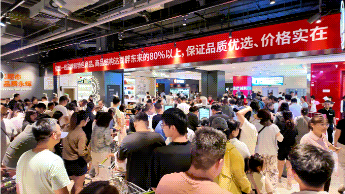 此次調(diào)改,力度空前,近半數(shù)商品被汰換,新增商品近一萬(wàn)支,烘焙、熟食等鮮食比例從6%躍升至近20%,調(diào)整后的商品結(jié)構(gòu)接近胖東來(lái)商品結(jié)構(gòu)的80%左右,為消費(fèi)者帶來(lái)耳目一新的購(gòu)物體驗(yàn)。