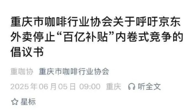 對(duì)此,重慶市咖啡協(xié)會(huì)于6月5日發(fā)布倡議書,呼吁停止“百億補(bǔ)貼”引發(fā)的內(nèi)卷式競(jìng)爭(zhēng)。倡議指出,2025年一季度以來(lái),平臺(tái)持續(xù)的補(bǔ)貼大戰(zhàn)已導(dǎo)致咖啡市場(chǎng)價(jià)格斷崖式下跌,嚴(yán)重威脅行業(yè)長(zhǎng)期健康發(fā)展。巴浪森林咖啡、霧光商務(wù)咖啡等多家本地獨(dú)立品牌聯(lián)署支持該倡議。