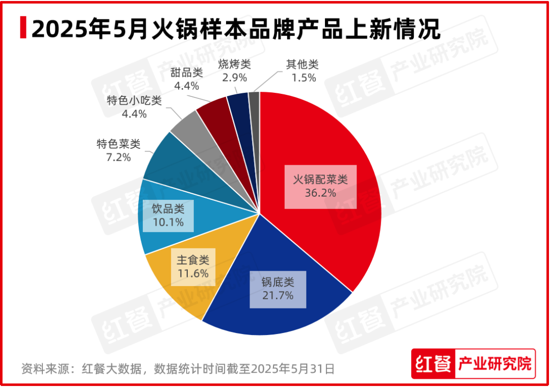 2025年5月,在紅餐產(chǎn)業(yè)研究院監(jiān)測(cè)的火鍋品牌中,有19個(gè)火鍋品牌共推出了69款新品。
