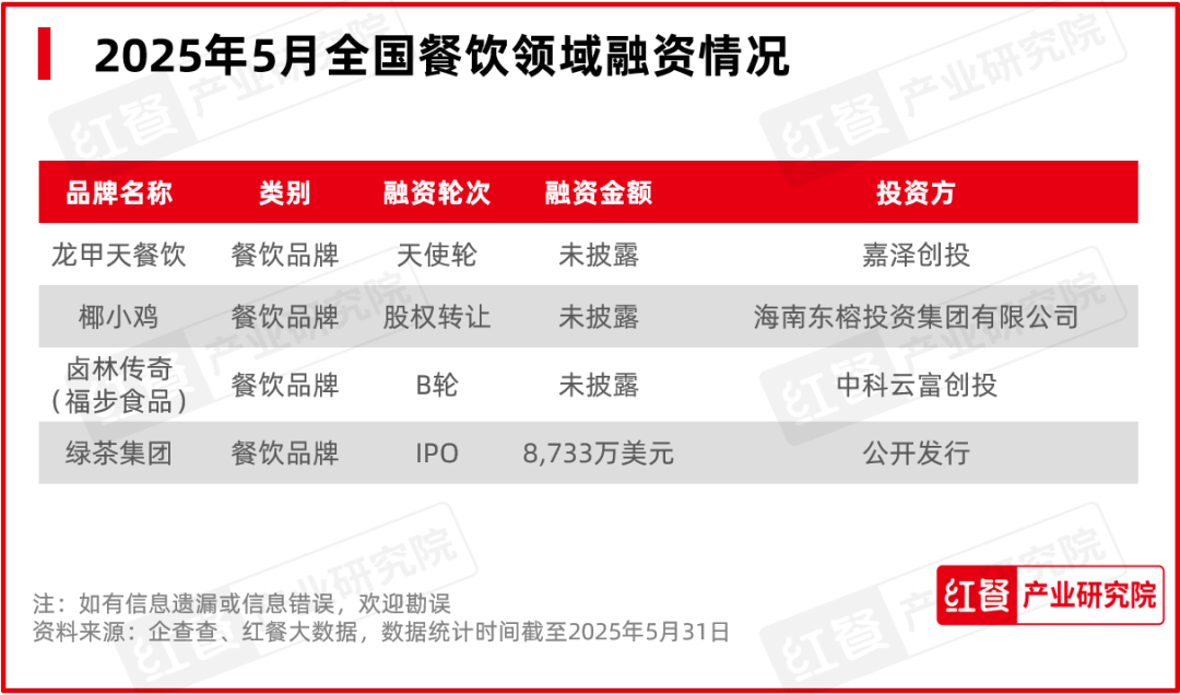 4.2025年5月餐飲領(lǐng)域融資事件、餐企上市詳情速覽;