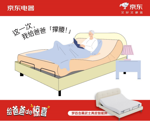 當(dāng)年輕爸爸忙著“買新鮮”,成年的子女們不約而同選擇給老父親“送健康”“送智能”。智能手表首選能監(jiān)測心率、血壓的;彩電要選大屏、可聲控的智慧屏,讓年邁的父母看得清,方便語音操控音量、切換頻道;就連“保溫杯里配枸杞”,也要買茶水分離的智能泡茶杯。在京東MALL,趙先生給67歲的父親訂了一臺夢百合智能升降床,他說:“老人節(jié)省慣了,但凡買禮物都說浪費(fèi),這次我選最實(shí)用的!過幾年家里的臥室、浴室也都要做適老化改造!边@款智能床帶有助起模式,可以抬高背部讓老人輕松起身,觀影模式還能調(diào)整背和腿的角度“秒變沙發(fā)”,讓老人舒適坐臥。