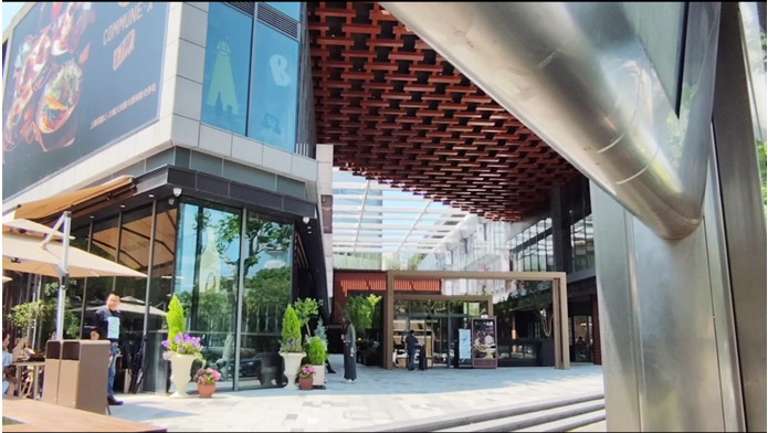 筆者看到了另外一個新開業(yè)的商場,距今開業(yè)約半年時(shí)間。商場體量不大,是一個小盒子+街區(qū)的構(gòu)成,自帶一個辦公樓,與前面例子中的商業(yè)格局類同。
