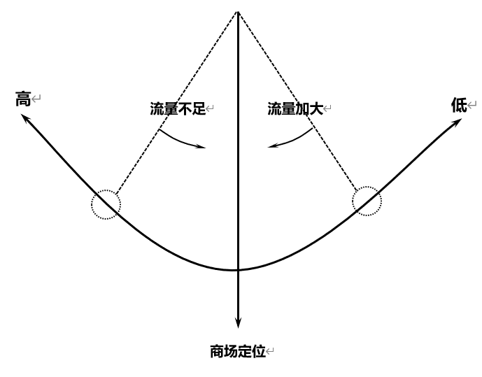 反之,若追求過高的定位,以“裝補(bǔ)”等手段來推行,不是做不到,但不穩(wěn)固。因?yàn)榍吆凸训目土饕欢〞淌蔂I業(yè)額,導(dǎo)致租戶無法持續(xù)經(jīng)營。此時(shí)若將定位拉低,則一定需要“矯枉過正”才能達(dá)到目的(鐘擺擺過頭),這就浪費(fèi)了時(shí)間,短則一年,長則三年。