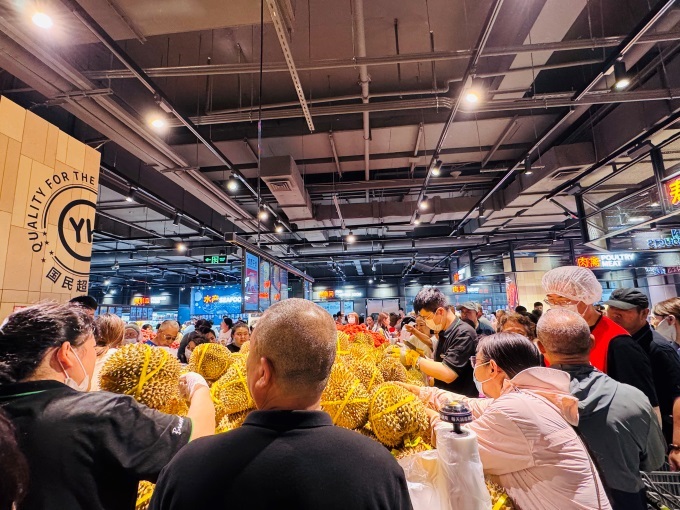 水果區(qū)的泰國金枕榴蓮專柜占據(jù)C位,集合荔枝、山竹等時令爆品,龍泉驛水蜜桃、新疆小白杏等跨越千里擺上貨架,水果同步推出鮮榨果汁、鮮切水果和標注最佳食用順序的果切拼盤。為保障生鮮品質(zhì),超市嚴格執(zhí)行鮮度承諾,葉菜、分切肉禽等嬌嫩商品實行“當日清空”,果切超4小時八折、6小時六折、8小時下架,讓消費者每一口都吃得新鮮、安心。