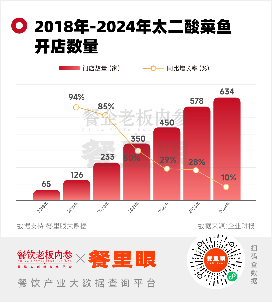 不過(guò),開(kāi)放加盟的步伐并不快,2024年財(cái)報(bào)顯示,新開(kāi)的95家太二門(mén)店里,加盟店只有11家。雖然太二每年都有新店開(kāi)業(yè),但是同比新增逐年降低。