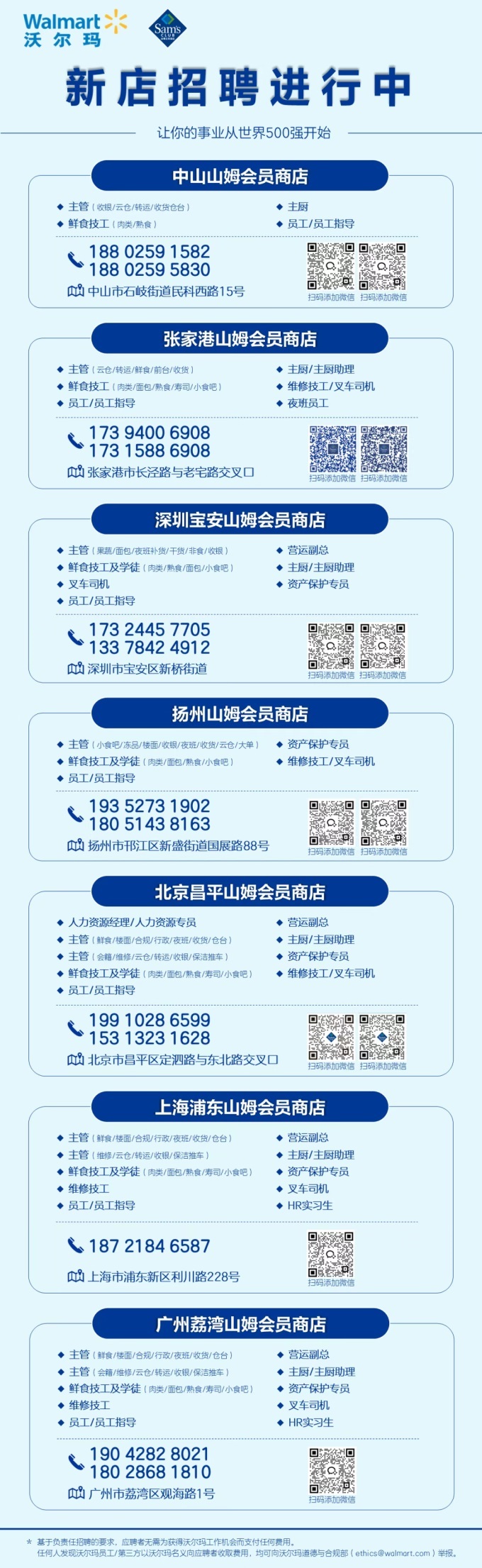 沃爾瑪中國6月份的招聘已經(jīng)新鮮出爐,根據(jù)招聘公告,山姆中國目前有7家門店進(jìn)入“招聘”期,進(jìn)入開業(yè)沖刺階段。招聘職位包括,收銀、云倉、轉(zhuǎn)運(yùn)、收貨倉臺、保潔推車、果蔬、肉類、面包、小食吧、干貨、鮮食、樓面、維修、鮮食技工等。