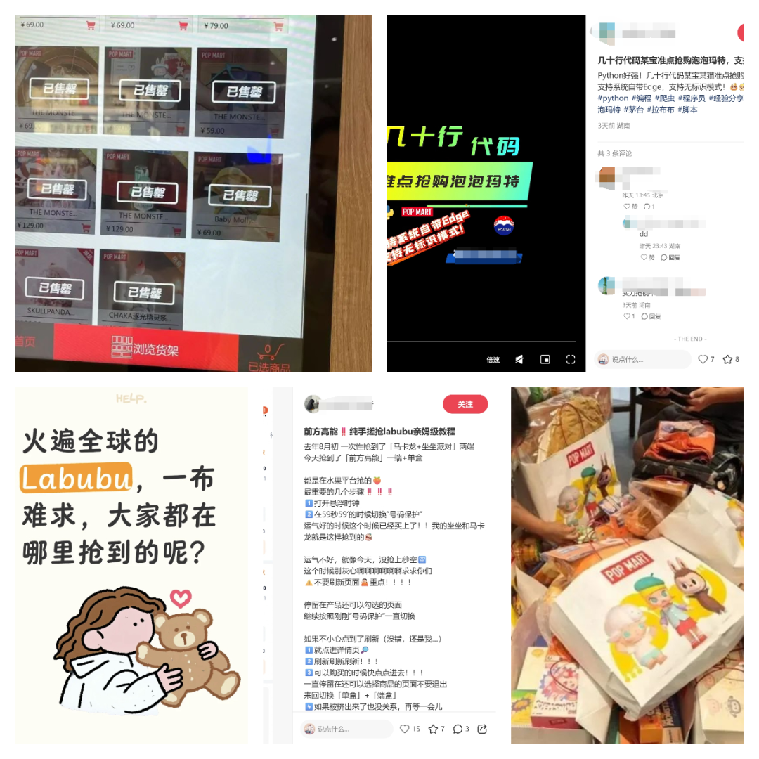 原版售價69的手辦,轉(zhuǎn)手就能賣出幾倍甚至幾十倍的溢價,收藏價值堪稱“塑料茅臺”。黃牛人肉排隊+“科技”手段掃光了貨,普通消費者只能揮舞一下拳頭發(fā)泄情緒。