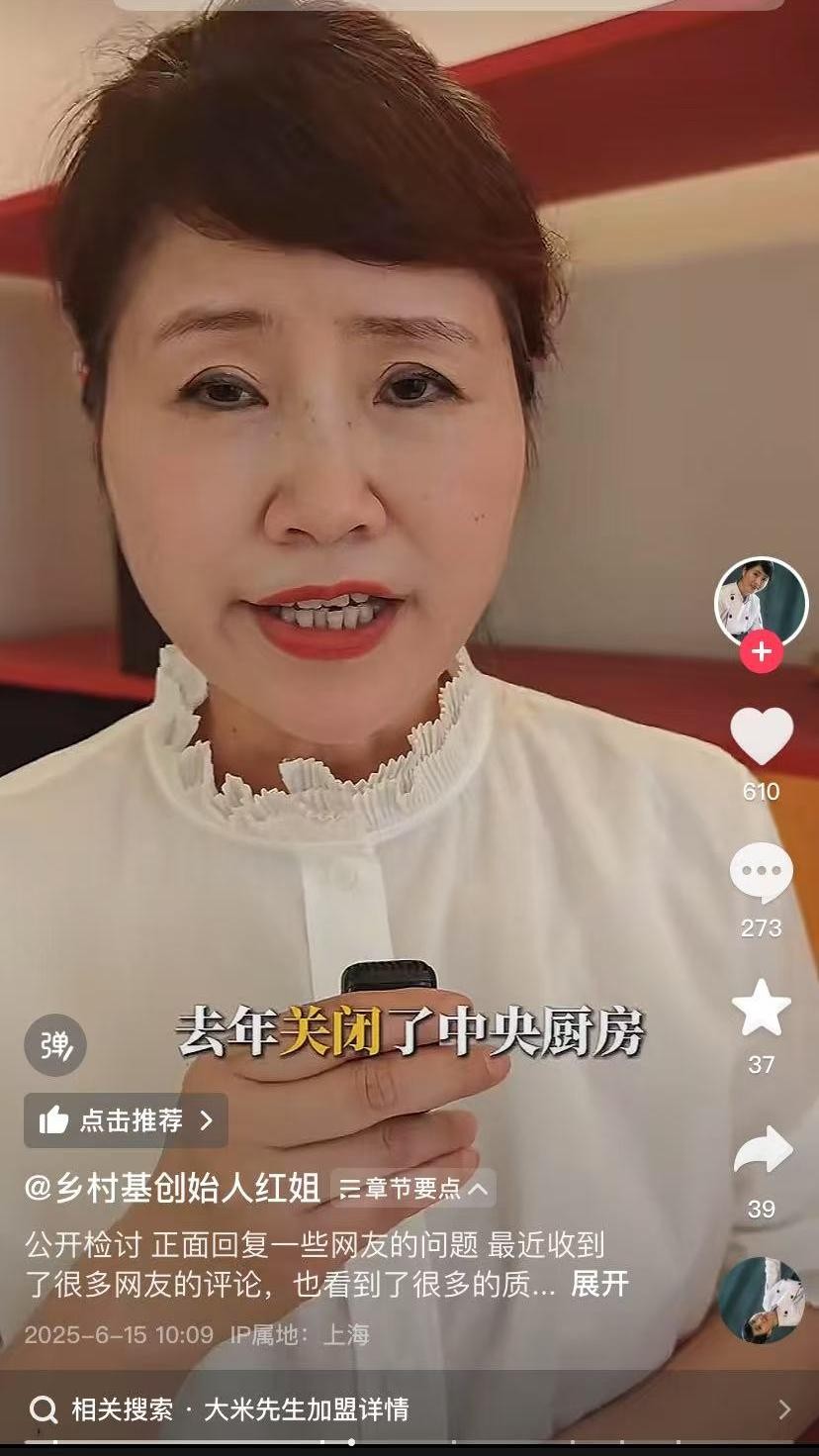 6月15日,鄉(xiāng)村基創(chuàng)始人、董事長李紅在社交平臺上發(fā)布視頻公開檢討,同時(shí)正面回應(yīng)一些網(wǎng)友的問題。