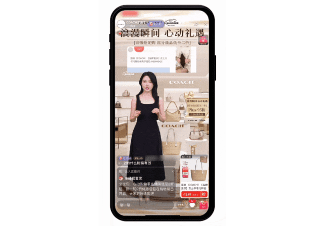 “材質(zhì)上甄選優(yōu)質(zhì)牛皮革,耐磨耐刮,越用越有質(zhì)感,越用越有味道”,COACH直播間里,身著一襲黑色連衣裙的主播正拿著一只包包介紹道;