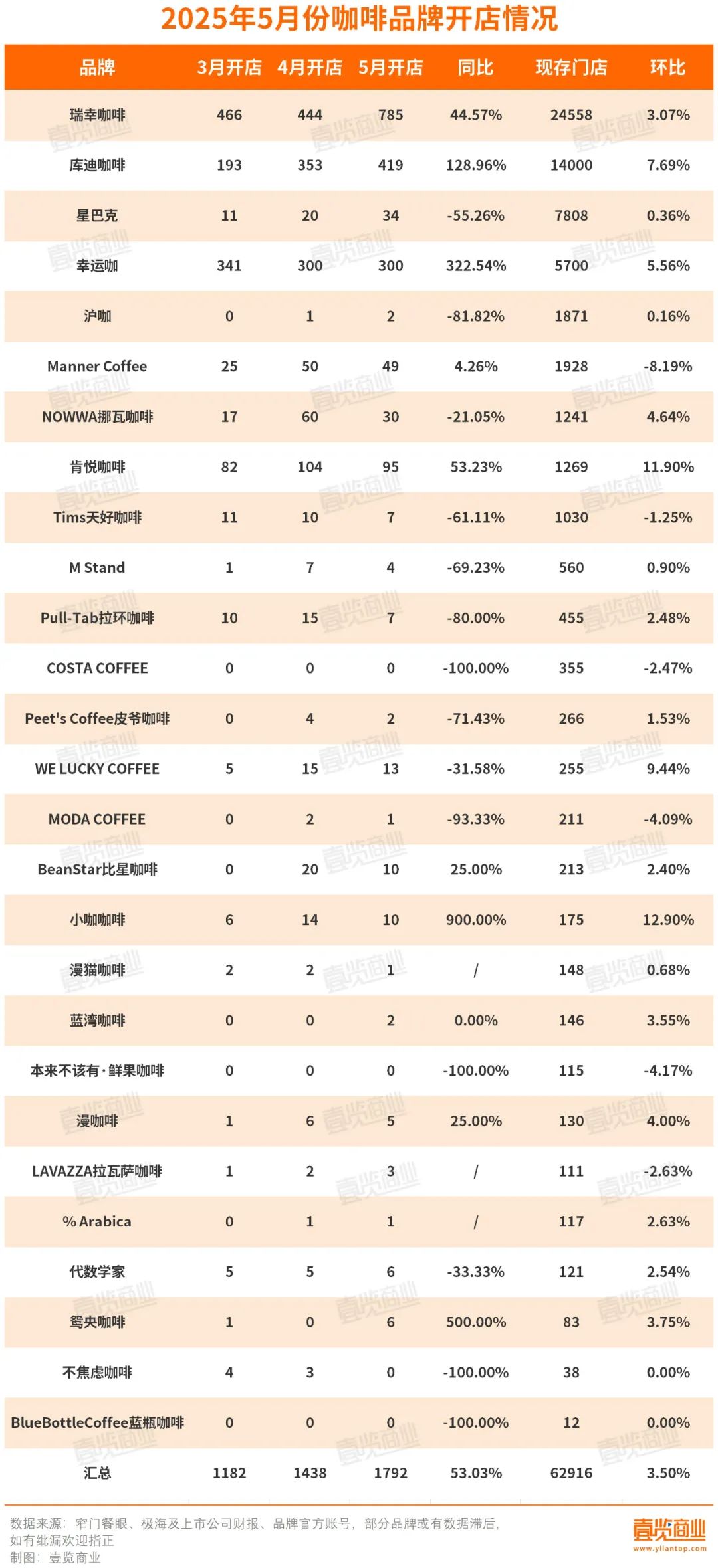 5月,咖啡開店數(shù)量進(jìn)一步上漲。