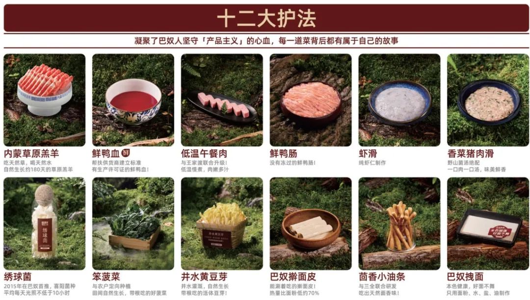 招股書顯示,2022年、2023年及2024年以及截至2025年3月31日止三個(gè)月,“一王一后十二大護(hù)法”的銷售額分別占同期總銷售額的49.8%、48.0%、47.9%及49.6%,“這些產(chǎn)品夯實(shí)了巴奴在品質(zhì)火鍋領(lǐng)域中的產(chǎn)品競(jìng)爭(zhēng)優(yōu)勢(shì)及品牌定位。”