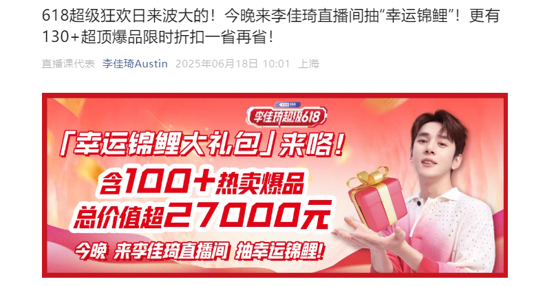 圖源:李佳琦Austin官方微信公眾號