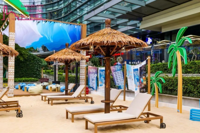 來到百年鐘樓,婆娑椰林、碧海金沙依次引入眼簾,戶外草坪更設(shè)有沙灘休憩區(qū)、棕櫚樹打卡點、海浪聲光裝置、巨型水池等元素,一步一景樂趣連連,真實還原海島悠閑氛圍,足不出滬即可樂享城市微度假體驗。