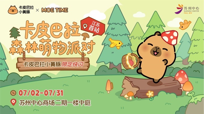 頂流IP卡皮巴拉小黃豚也將在這個暑假登陸蘇州中心商場。7月2日至7月31日,“卡皮巴拉森林萌物派對”快閃江蘇首站集結(jié)森林系列限定產(chǎn)品、潮玩爆款和多重福利引爆蘇州中心商場二期。作為風(fēng)靡全網(wǎng)的“佛系頂流”,卡皮巴拉小黃豚憑借慵懶萌態(tài),成為年輕人松弛生活的精神符號。這個夏天,與卡皮巴拉小黃豚共赴一場“情緒休假”,享受獨(dú)一無二的沉浸式森林奇遇。