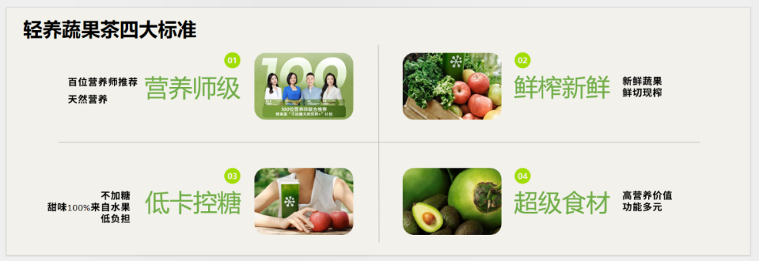 在產(chǎn)品打造上,奈雪遵循“營養(yǎng)食材+新鮮現(xiàn)制+低卡控糖”的輕養(yǎng)健康公式,推出一系列輕飲輕食產(chǎn)品。每款產(chǎn)品至少嚴(yán)選3種綠色食材,確保能為消費(fèi)者補(bǔ)充3種以上關(guān)鍵營養(yǎng)元素。