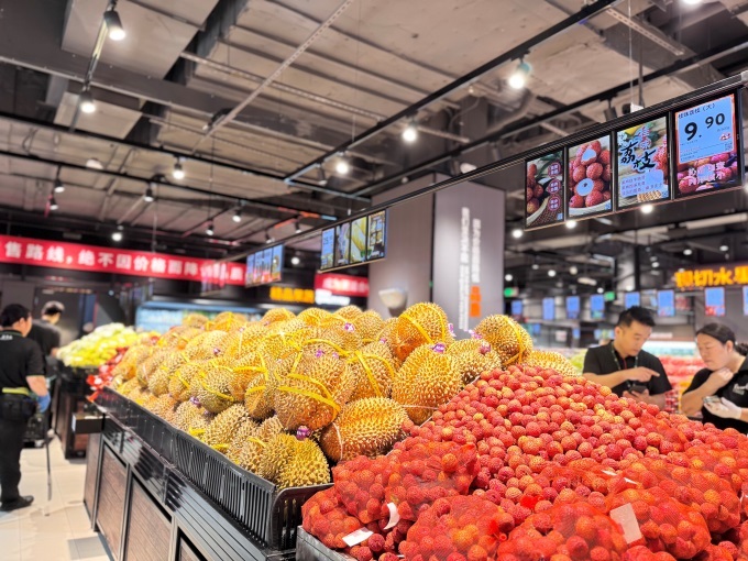 服務(wù)升級永無止境。濱海萬達(dá)廣場店深化“學(xué)習(xí)胖東來”服務(wù)精髓,肉禽海鮮柜臺提供免費(fèi)去鱗剖魚、切絲切片、打氧等個性化服務(wù);收銀臺配備打包臺、保溫袋、冰袋及一次性餐具。在食品百貨貨架處,增設(shè)了放大鏡,讓商品信息更加“清晰”;西瓜、榴蓮、椰青等整個水果還提供現(xiàn)切、剝殼、開口等服務(wù),方便即食。