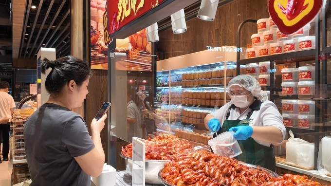 針對生鮮商品,柜臺服務同樣細致周到。 肉禽柜臺可根據(jù)顧客需求提供切絲、切片、絞肉、剝皮等服務;海鮮柜臺針對高端海鮮,提供清洗、打氧服務,還能為顧客進行簡單的清蒸、蒜蓉烹飪。尤其對于可能居住酒店或追求便捷高效用餐體驗的香港游客而言,此項服務解決了后顧之憂。
