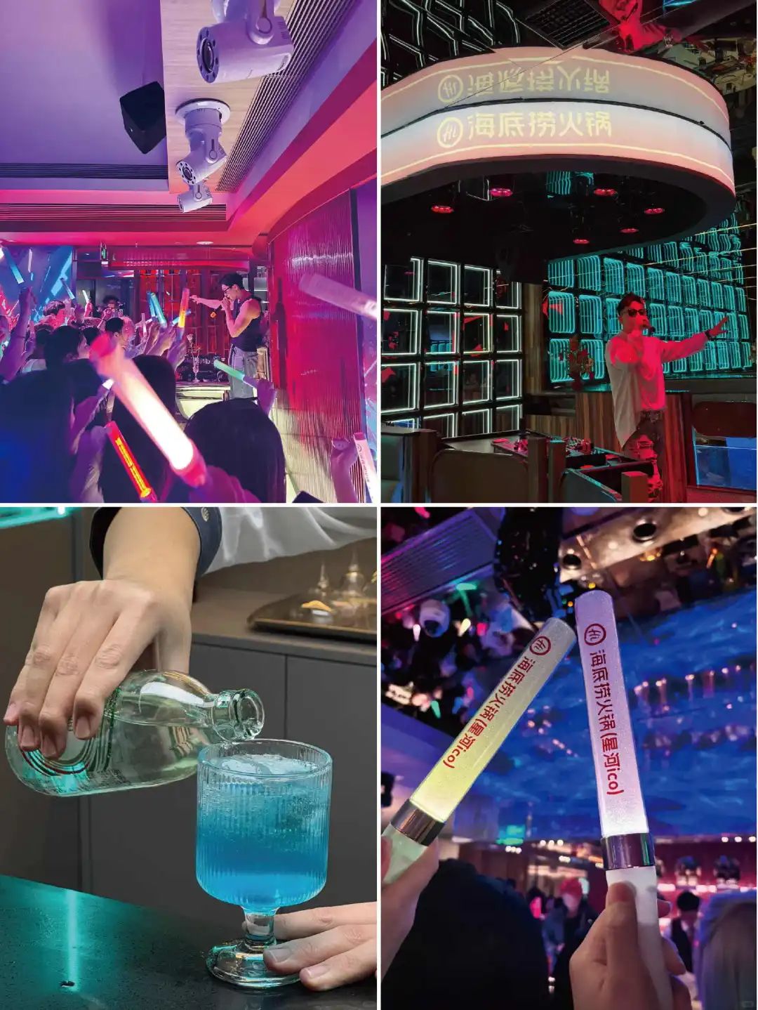 除了DJ打碟、勁歌熱舞之外,還有調(diào)酒師現(xiàn)場(chǎng)花式調(diào)酒、舞者臺(tái)上與顧客熱情互動(dòng)。在這里,火鍋成了陪襯,熱烈的氛圍才是主角。