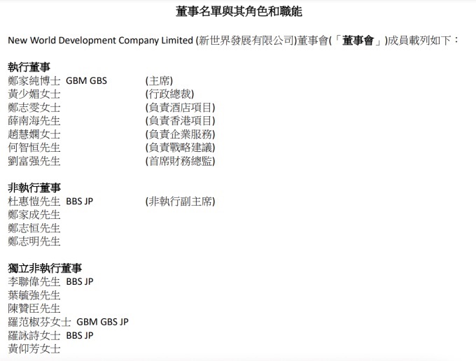 至此,新世界新的董事會(huì)架構(gòu)也形成。