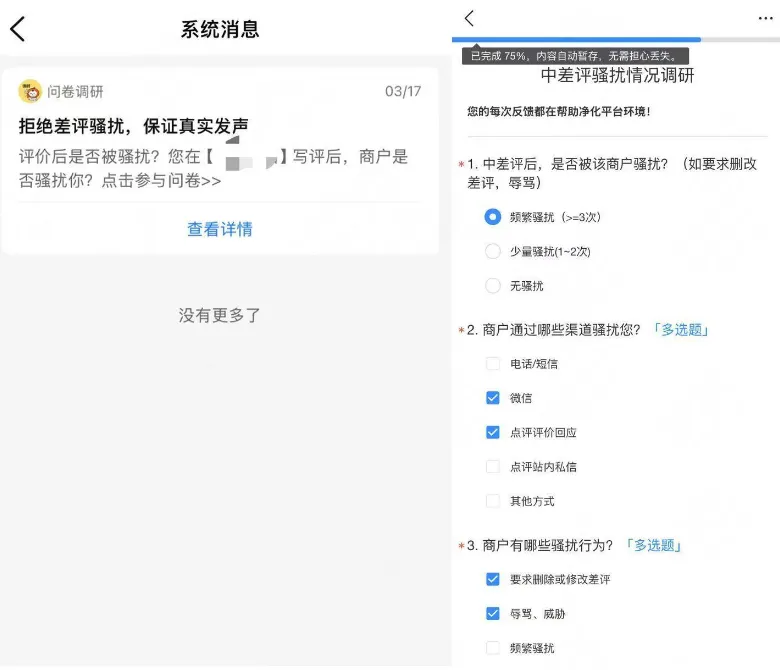 除此之外,在此次欄目改版升級前,美團(tuán)還針對消費(fèi)者吃飯時被要好評、寫真實(shí)差評吐槽被騷擾的問題,推出了全民監(jiān)督機(jī)制,開啟一鍵投訴功能。