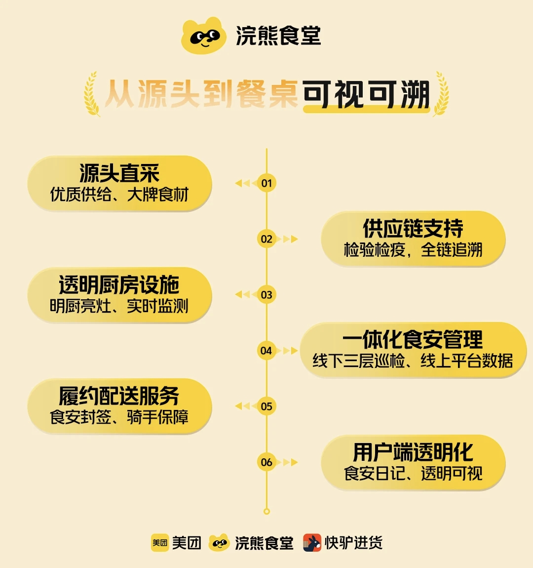 與此同時,在將近半年的試點(diǎn)工作中,美團(tuán)浣熊食堂已經(jīng)探索出了一套從產(chǎn)地到餐桌可視可溯的經(jīng)營方法,在一定程度上可以實(shí)現(xiàn)全鏈路可追溯可透明的放心外賣模式。