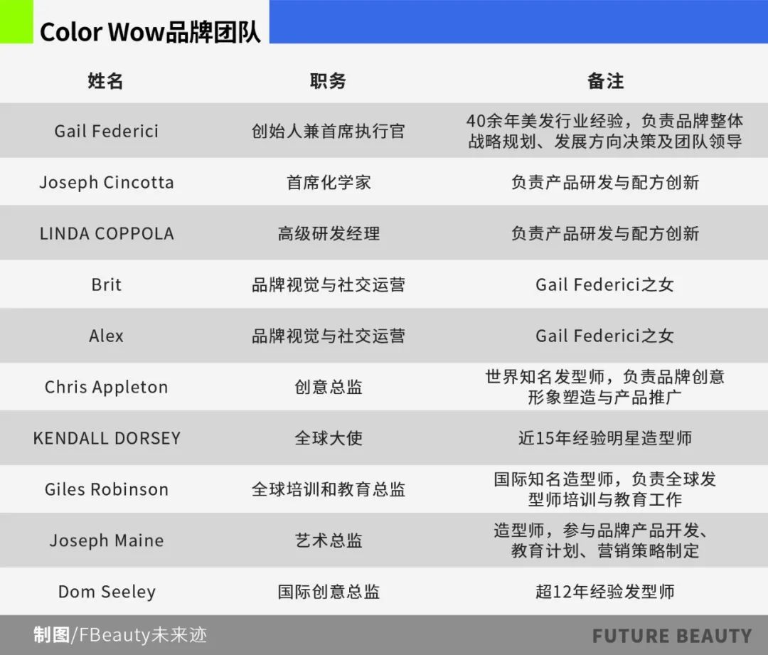 Color Wow的高管團(tuán)隊(duì)帶有鮮明的家族企業(yè)特征。Federici的雙胞胎女兒Brit與Alex負(fù)責(zé)品牌視覺(jué)與社交媒體運(yùn)營(yíng),弟弟與妹妹分別掌管供應(yīng)鏈與法務(wù)板塊,核心團(tuán)隊(duì)從John Frieda時(shí)期延續(xù)至今,形成高度默契的協(xié)作體系。營(yíng)銷負(fù)責(zé)人Ann Bell同樣擁有 20 年美妝行業(yè)經(jīng)驗(yàn),曾操盤多個(gè)國(guó)際品牌的市場(chǎng)推廣。