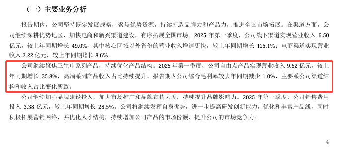 同時,開展消費者探訪工廠、高鐵公益免費衛(wèi)生巾等系列營銷活動,在消費端持續(xù)提升品牌好感度。據(jù)母公司百亞股份2025Q1財報,自由點衛(wèi)生巾營業(yè)收入達9.52億元,較2024年同期增長35.8%,高端系列產品收入占比持續(xù)提升。618期間,自由點更是登頂抖音衛(wèi)生巾品牌TOP1。