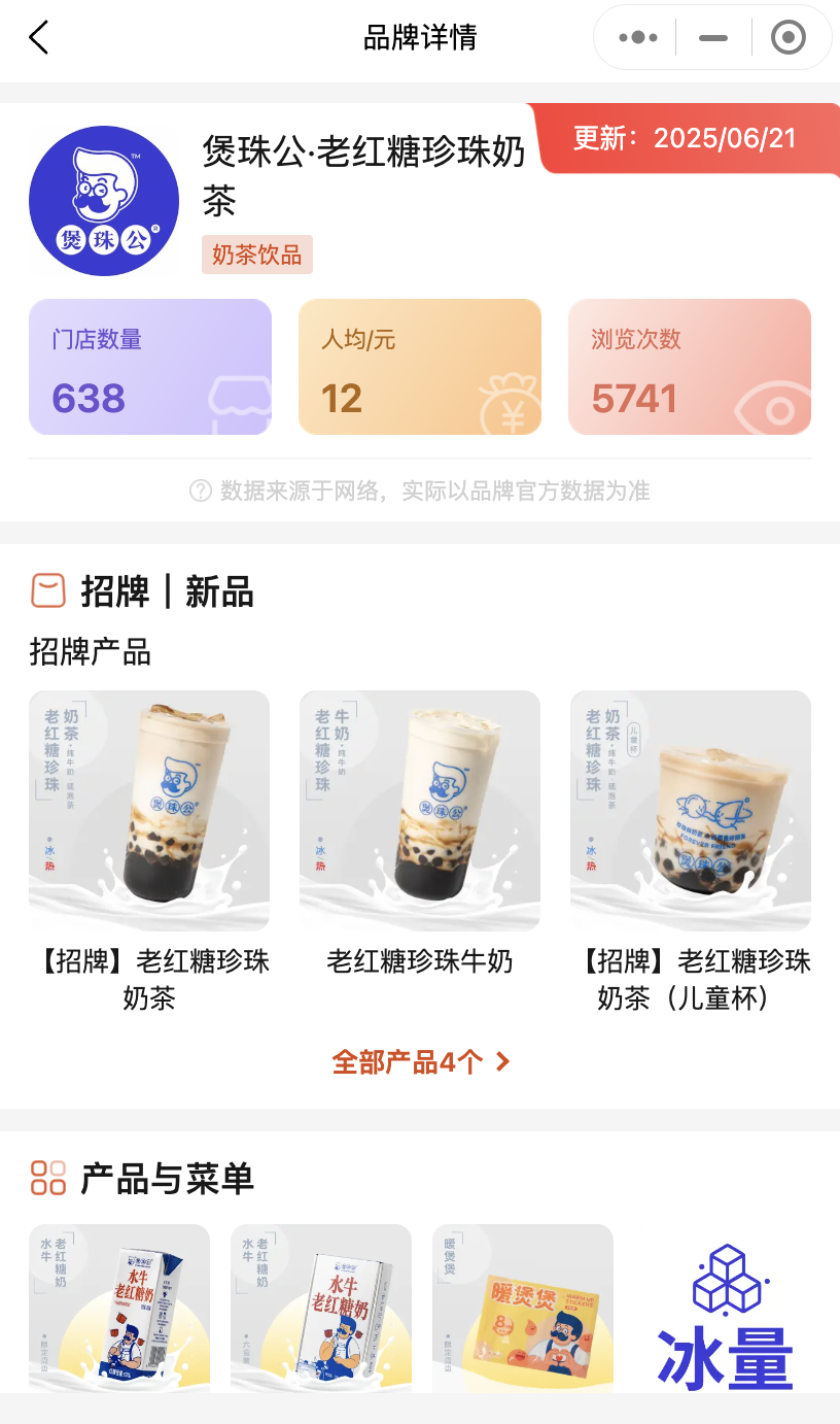 煲珠公·老紅糖珍珠奶茶:全國門店數(shù)638家,門店數(shù)廣東最多為285家,其次是廣西112家,上海82家,聚焦一、二線城市,以“老紅糖珍珠奶茶”為核心爆品。