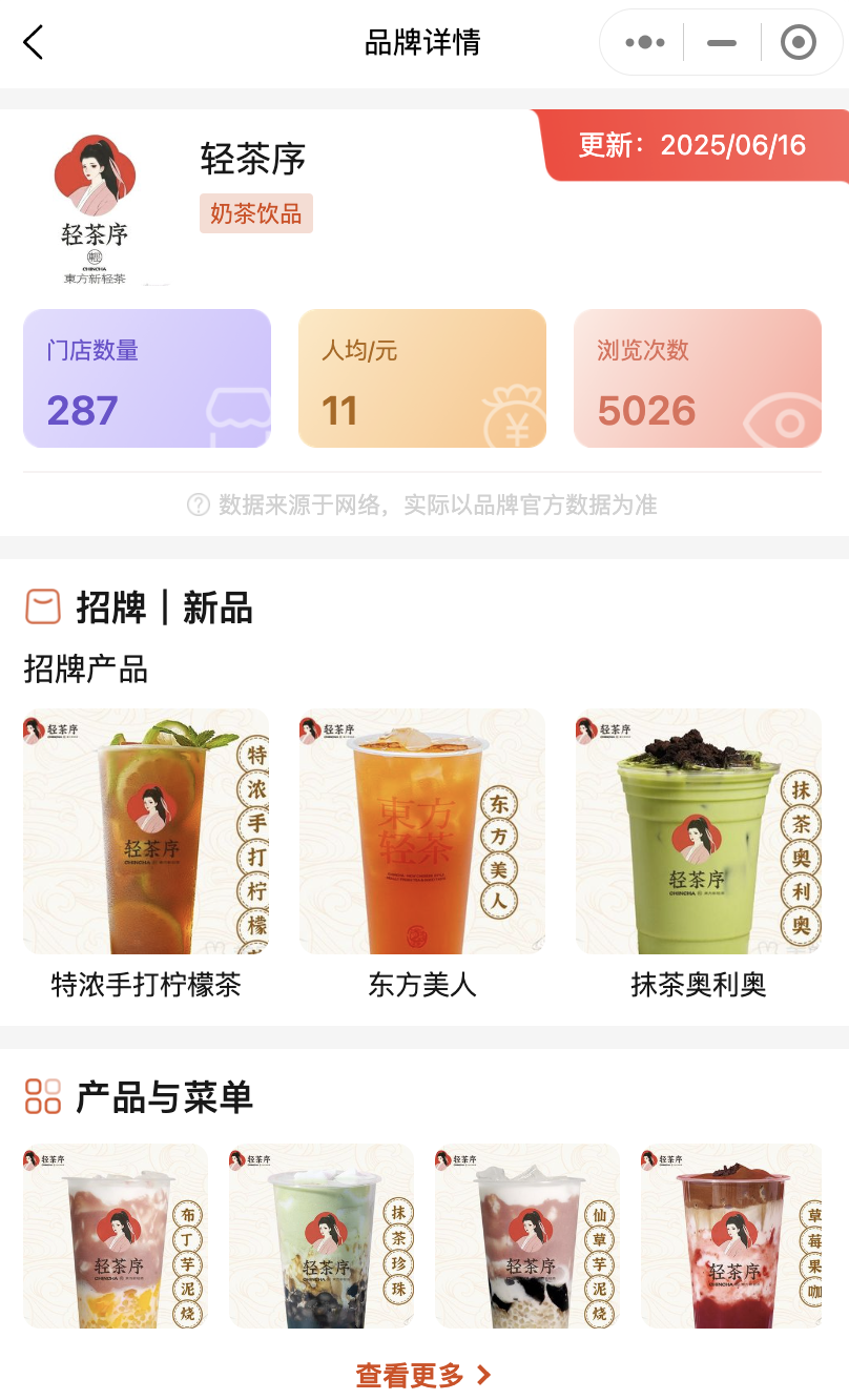 輕茶序:全國門店數(shù)287家,扎根廣東,主攻二、三、四線市場,“超級葡萄”、“苦瓜檸檬茶”等差異化產(chǎn)品受追捧。