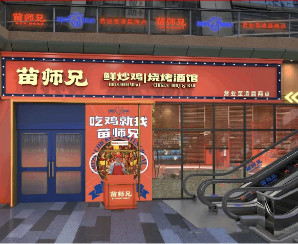 2021年11月,苗師兄鮮炒雞(正弘城店)升級為“鮮炒雞+燒烤酒館”復(fù)合業(yè)態(tài),引入燒烤、熱鹵、雞尾酒等品類,營業(yè)時間延長至凌晨2點(diǎn),試水宵夜市場。