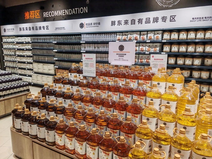 食百區(qū)本地元素拉滿,紅星軟香酥、皇瑰稠酒、西鳳酒等陜西特產(chǎn)陳列醒目;胖東來(lái)自有品牌專(zhuān)區(qū)引入DL礦泉水、精釀啤酒、燕麥脆等多款胖東來(lái)爆款單品;永輝優(yōu)選系列涵蓋果汁、白酒、洗衣液等生活剛需,形成“家門(mén)口的品質(zhì)優(yōu)選庫(kù)”。