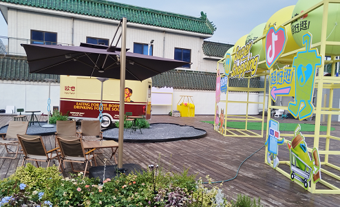 (4)頂層打開“仰望花園”。通過五層餐飲區(qū)可以到達(dá)樓頂?shù)?600平方米的露臺花園,該區(qū)域設(shè)置了戶外體驗互動活動區(qū)域、啤酒花園區(qū)、游藝互動區(qū)、休閑觀賞區(qū)等。