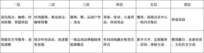 (1)服裝為主的零售品類縮小。零售業(yè)態(tài)“瘦身”以男裝、女裝大幅度壓縮為標(biāo)志,布局分散到一至三層,與各個樓層相關(guān)的生活功能類項目搭配聯(lián)動,一掃傳統(tǒng)百貨店服裝扎堆、老氣低效的氣息。騰出的面積轉(zhuǎn)化為生活功能性服務(wù)項目。王府井集團北京雙安商場總經(jīng)理胡綺年介紹,非零售經(jīng)營項目由原來的8%增加到接近30%。