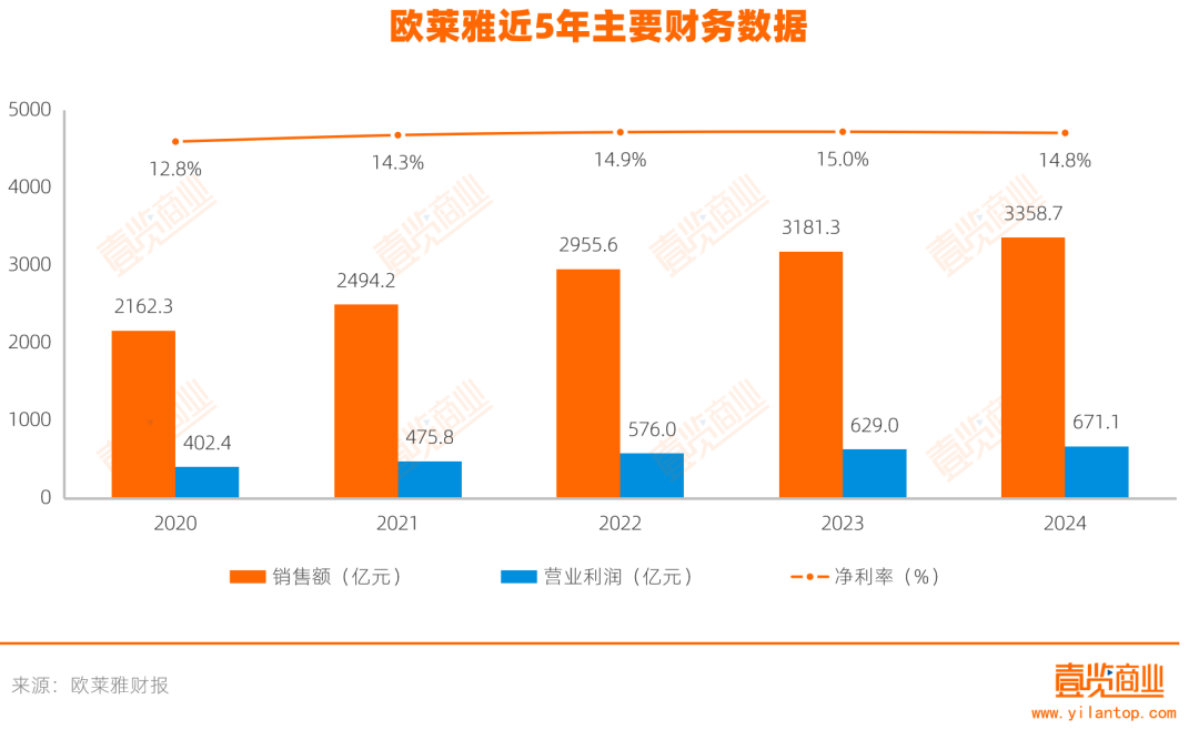 歐萊雅財報數(shù)據(jù)顯示,近5年其銷售額和營業(yè)利潤均呈現(xiàn)上漲趨勢,但從2022年開始,銷售額和營業(yè)利潤增速出現(xiàn)明顯放緩,到2024年歐萊雅凈利率增速同比下降0.2%。分區(qū)域看,2024年包括中國在內(nèi)的歐萊雅集團北亞區(qū)營收同比下滑3.2%,是唯一出現(xiàn)負增長的地區(qū)。中國市場營收也出現(xiàn)個位數(shù)下滑,這是歐萊雅中國業(yè)績近10年來首次出現(xiàn)負增長。