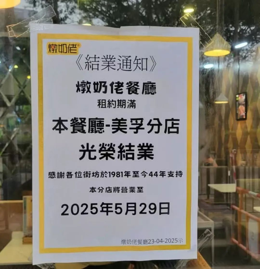 已有44年歷史的連鎖茶餐廳“金裝燉奶佬”的最后一家門店,也于5月29日停止營業(yè),該品牌全盛期在全港曾有24家門店。